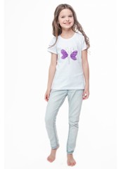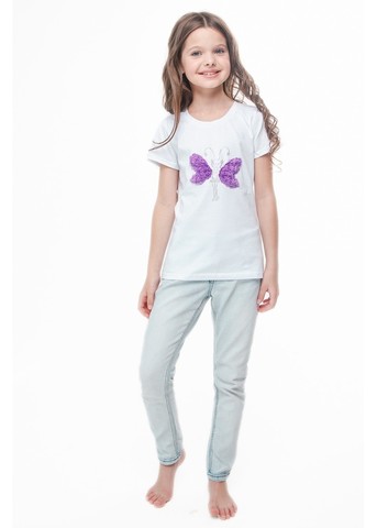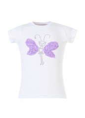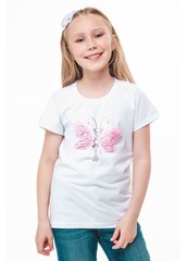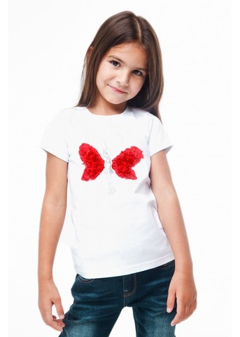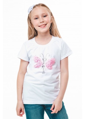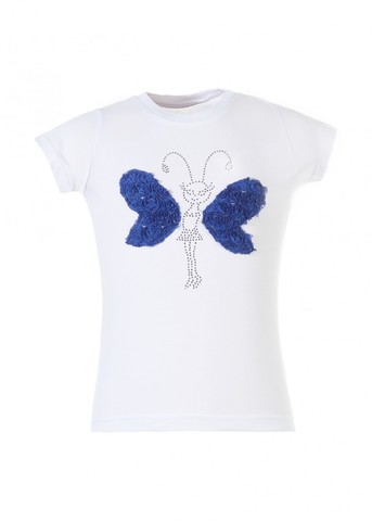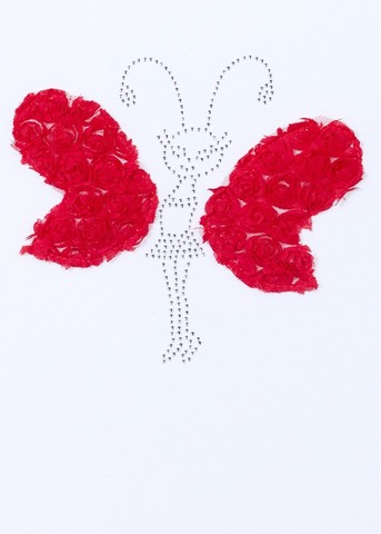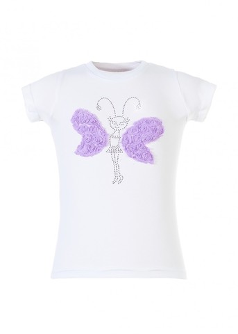 Футболка из высококачественного полотна Компакт пенье с бабочкой из страз с крыльями с розами. Рекомендовано стирать при 40 градусах без применения хлорсодержащих средств.