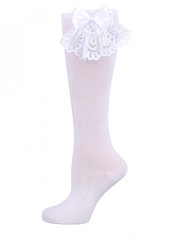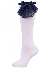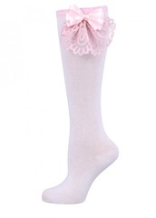 Гольфы для девочки, украшены бантом из кружева стрейч и атласной ленты. Предварительная стирка обязательна. Рекомендовано стирать вручную. Не гладить. 1пара в пакете.