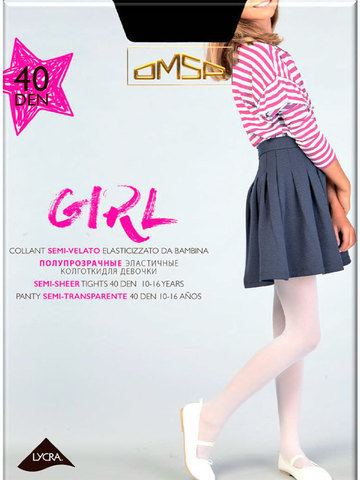 GIRL 40 - детские для девочек на возраст от 6 до 12 лет. Прозрачные колготки средней плотности на каждый день с посадкой на талии. Размеры: на 6-8 лет (рост 116-134 см) и 9-12 лет (рост 134-152 см).