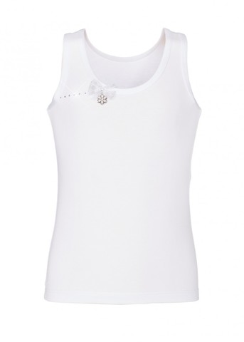 Майка из высококачественного полотна Компакт пенье спереди украшена полосой из страз и бантом из огранзы с подвеской в виде цветка. Рекомендовано стирать при 40 градусах без применения хлорсодержащих средств.