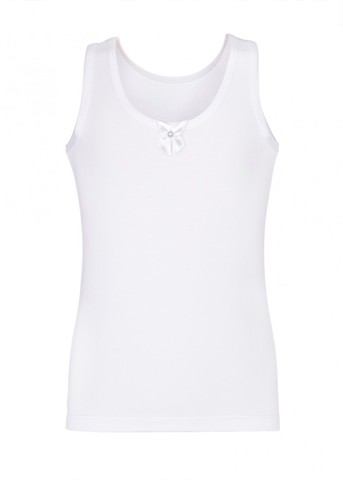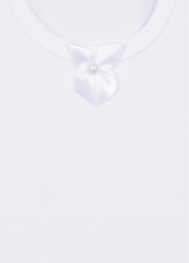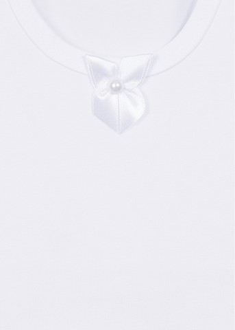 Майка из высококачественного полотна Компакт пенье спереди украшена бантом из атласной ленты с полужемчужиной. Рекомендовано стирать при 40 градусах без применения хлорсодержащих средств.