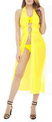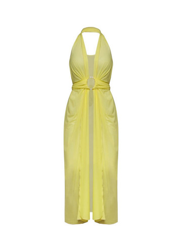 Специально скроенная сетка-мэш, которая с помощью прилагаемого или любого другого кольца-браслета превращается в элегантное пляжное платье. Дополнительная возможность использования в качестве парео или туники за счет особенного кроя.